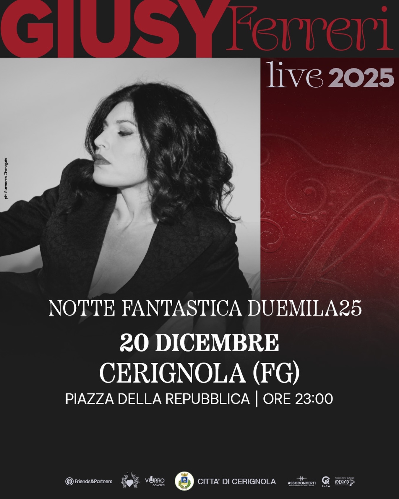 At 11:00 PM, in Piazza della Repubblica, Giusy Ferreri, the star of the main concert of the Notte Fantastica 2025, will perform.