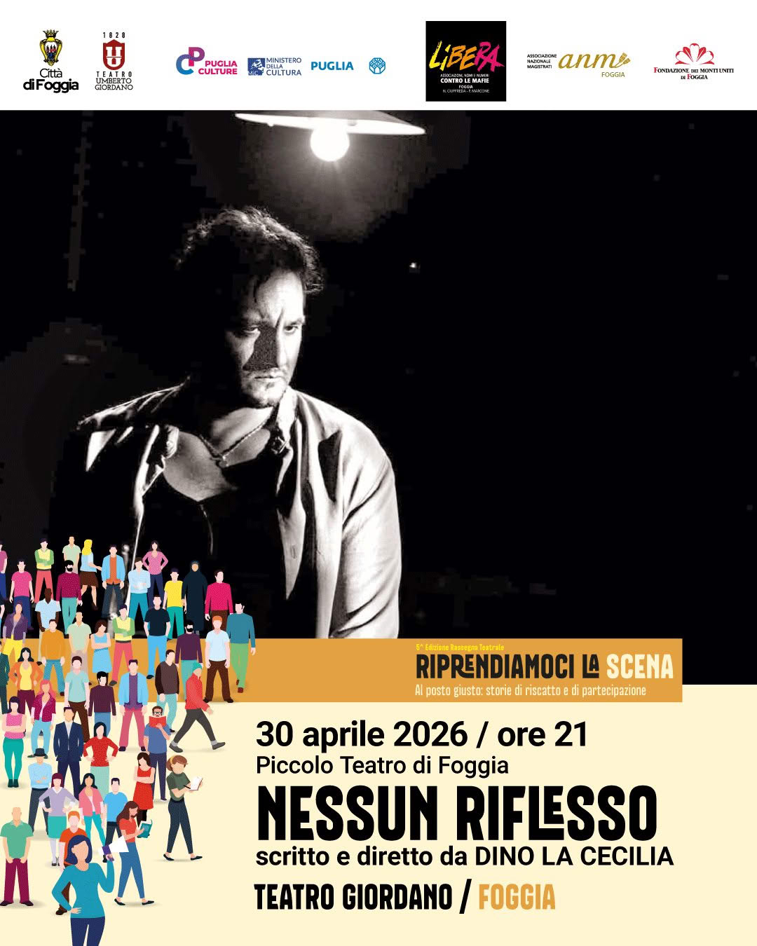 Tickets, starting from €13, are available online and at Vivaticket sales points; the box office of Teatro Umberto Giordano will be open on the day before and on the day of the performance from 7:00 PM.The initiative is promoted by the City of Foggia in collaboration with Puglia Culture, Libera Foggia, the National Association of Magistrates, and the Foundation of the Monti Uniti of Foggia.