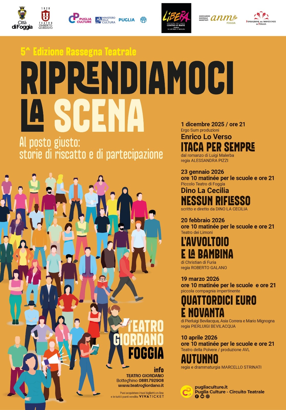 Inserita nella stagione teatrale 2025/2026, torna al Teatro Umberto Giordano di Foggia la quinta edizione della rassegna “Riprendiamoci la scena”, in programma dall’1 dicembre 2025 al 10 aprile 2026.