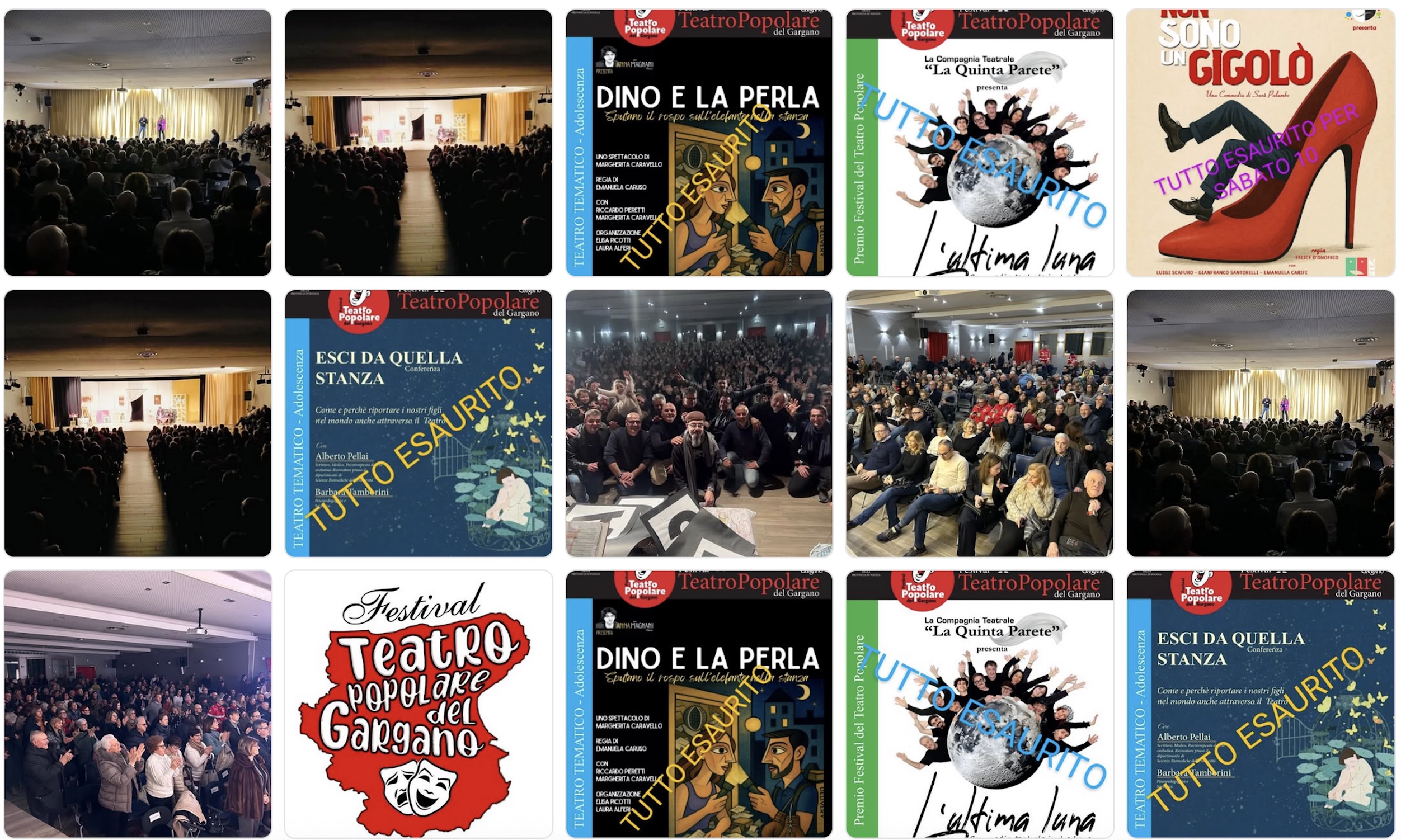 Il Festival del Teatro Popolare del Gargano sta registrando una straordinaria partecipazione: l’Auditorium Lanzetta ha fatto segnare il sold out in quasi tutti gli spettacoli finora andati in scena. Il pubblico, numeroso e partecipe, ha seguito con entusiasmo anche gli eventi speciali dedicati quest’anno al tema dell’adolescenza.