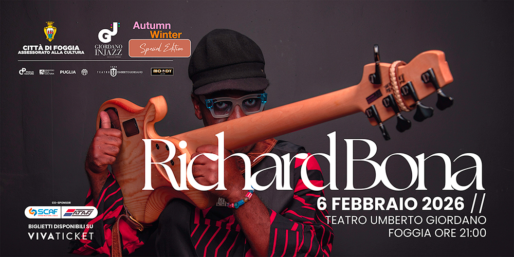 Il Festival Giordano in Jazz è lieto di presentare il primo concerto del 2026, inaugurando la nuova edizione con un evento di altissimo profilo internazionale: Richard Bona arriva a Foggia per l’unica data del Centro-Sud Italia, una delle sole due tappe italiane del suo tour.