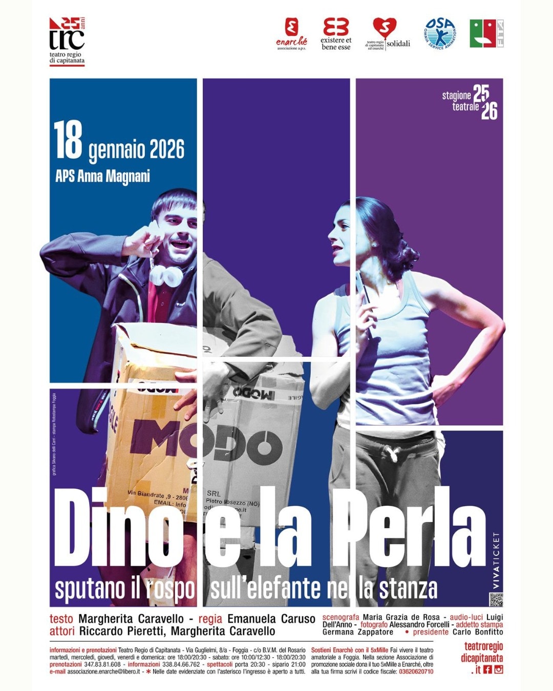 “Dopo la bella esperienza dello spettacolo ‘Un caffè con Alda Merini’ durante la precedente stagione al Teatro Regio – dichiara Carlo Bonfitto, presidente di ‘Enarchè aps’ – anche quest'anno l’APS Anna Magnani torna a essere nostra ospite con uno spettacolo molto interessante di teatro sociale. Da sempre, infatti, siamo attenti a portare in scena anche tematiche particolari perché siamo convinti che la commedia ha il compito di lanciare dei messaggi rivolti soprattutto ai giovani”.