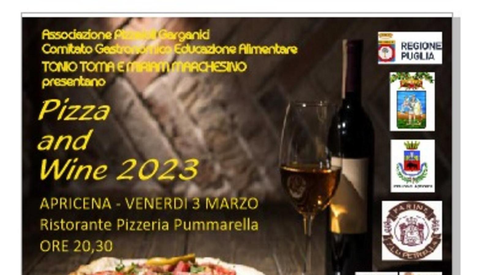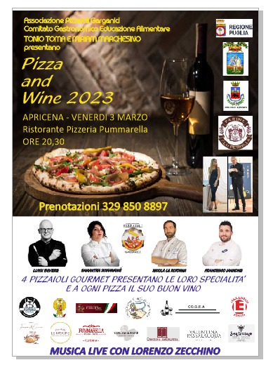 Venerdì 03 marzo alle ore 20:00, presso Pummarella Ristante-Pizzeria, ad Apricena si terrà l'attesa manifestazione "Pizza & Wine".