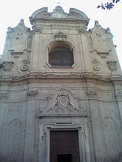 Probabilmente il nome originario di questa chiesa era Spirito Santo; comunque stando ai documenti più certi il titolo è "Santa Caterina Vergine Martire". Sorge nello stesso sito di una chiesa dedicata a Santa Caterina, una chiesa dei Celestini, finanche citata in un documento del 1348.