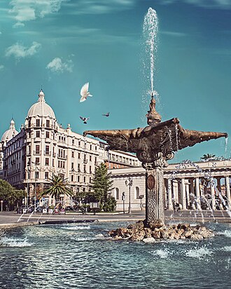 La Fontana del Sele, che inizialmente doveva essere un monumento provvisorio, venne progettata dall'ingegnere ravennate Cesare Brunetti su commissione del neonato Acquedotto Pugliese in occasione della nascita del medesimo. La fontana, che sarebbe dovuta essere sostituita da un monumento in marmo e bronzo, divenne ben presto il simbolo della città, così da diventare un monumento permanente.