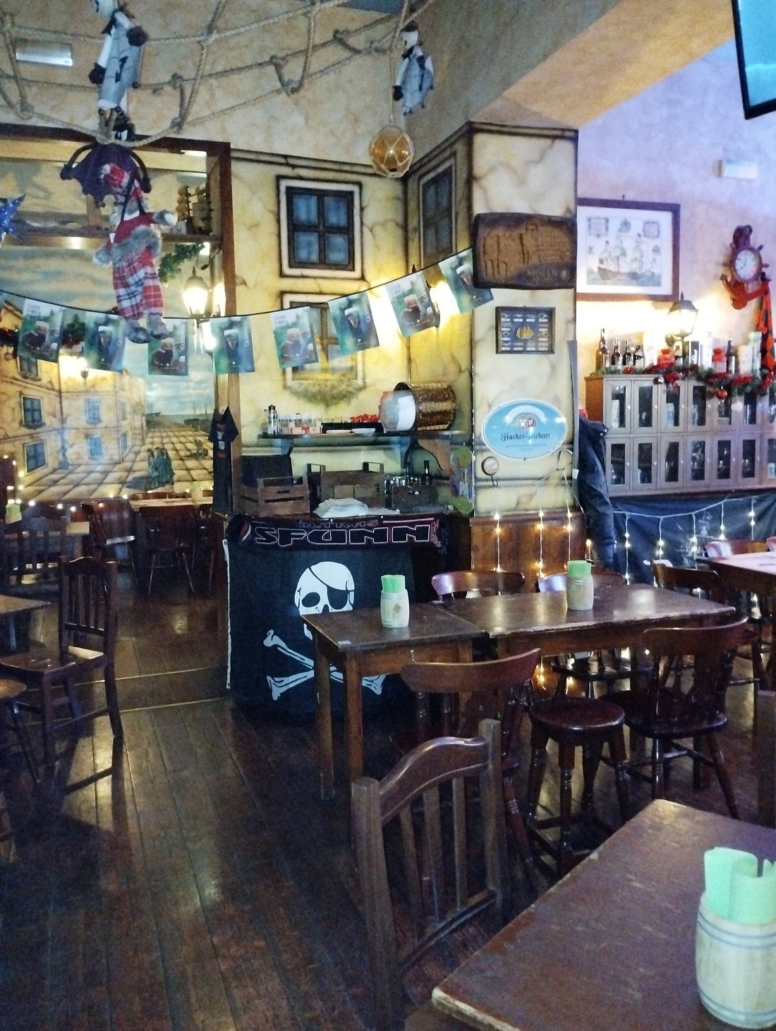 Entrare al Puerto Dino Pub significa immergersi in un ambiente dal carattere deciso e riconoscibile. L’arredamento, ispirato al mondo marittimo, richiama il fascino delle navi e dei viaggi sul mare: dettagli curati, elementi decorativi a tema e un uso sapiente degli spazi contribuiscono a creare un’atmosfera suggestiva, calda e informale. È un luogo che invita a fermarsi, a rilassarsi e a lasciarsi andare, ideale sia per una serata spensierata tra amici che per una cena tranquilla dopo una lunga giornata di lavoro o di studio.