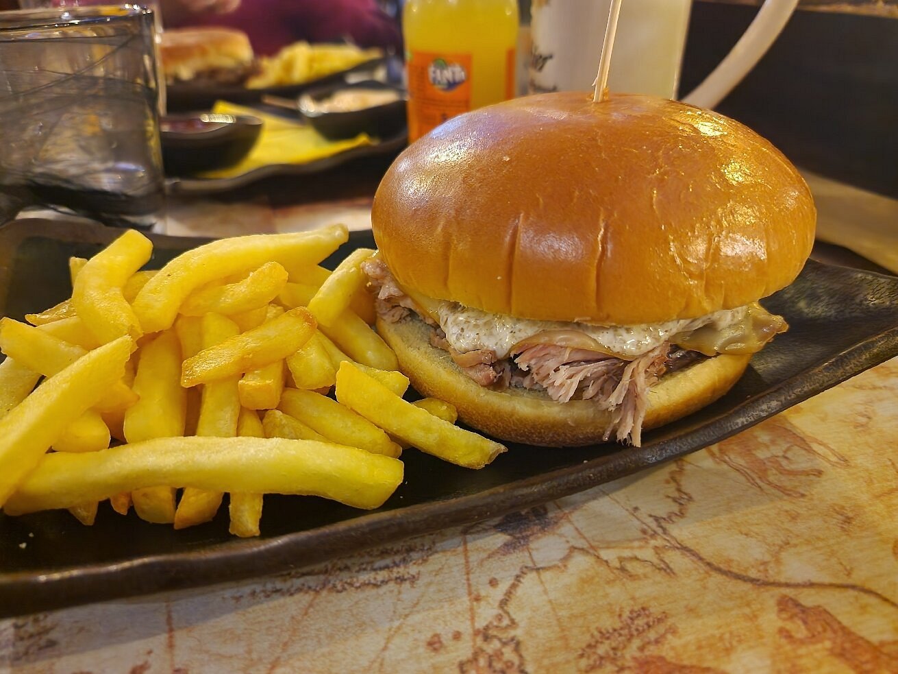 La proposta gastronomica è uno dei pilastri dell’esperienza offerta dal Puerto Dino Pub. Il menù è ampio e variegato, pensato per soddisfare gusti ed esigenze diverse: hamburger artigianali preparati con carni selezionate, panini ricchi e generosi, piatti sfiziosi da condividere e portate che uniscono sapori intensi e ingredienti di qualità . Grande attenzione è riservata alla scelta delle materie prime, elemento fondamentale per garantire un’offerta sempre curata e coerente nel tempo. Il tutto è accompagnato da una selezione di birre che spazia dalle più classiche alle artigianali, capace di conquistare sia gli appassionati più esperti sia chi desidera semplicemente scoprire nuovi sapori.